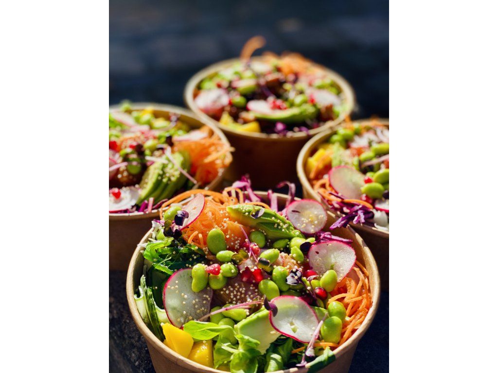 Miska sushi ryže, tuniak, zelenina, avokádo, zázvor, wakame šalát, edamame, mikrobylinky, dressing podľa výberu