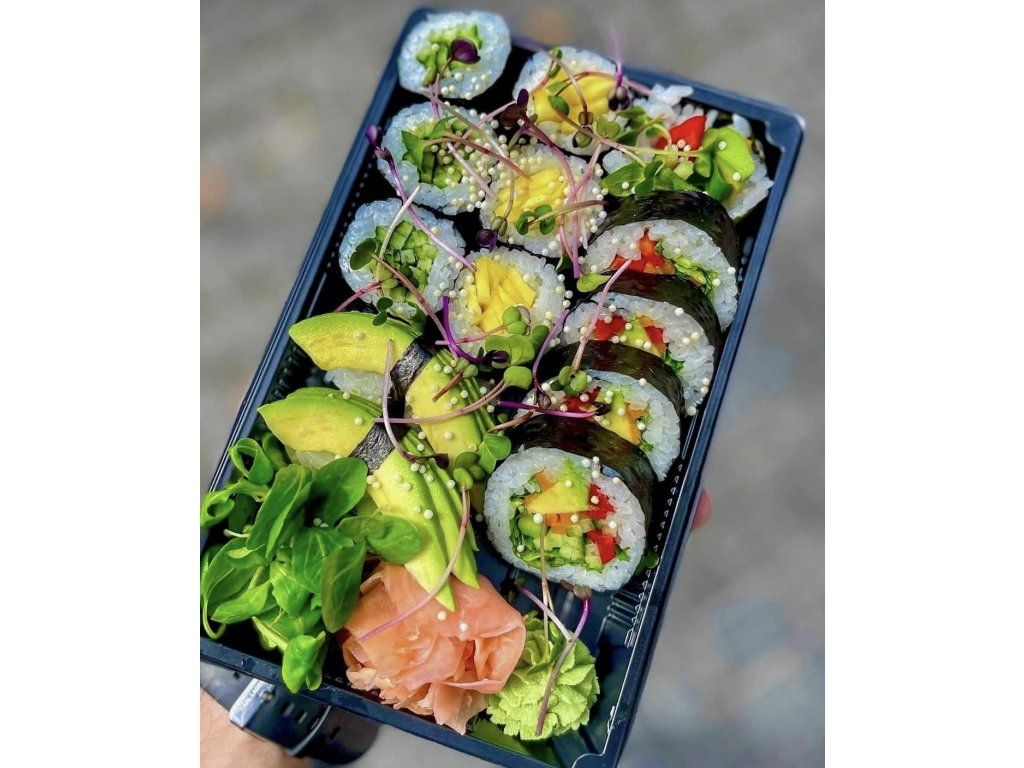 Futomaki Veggie Roll (6ks) - IN:avokádo, paprika, uhorka, šalát, špargľa OUT: riasa,